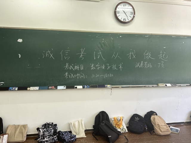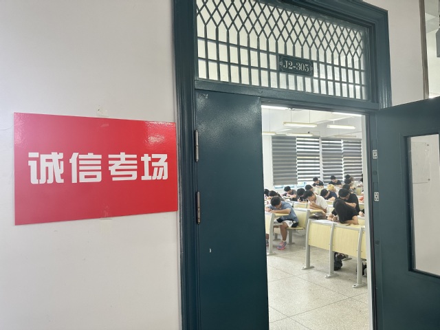 考试当天,J2-305教室内秩序井然,参与“诚信考场”的学生们自觉遵守考试规则,展现了高度的责任感与诚信精神。考场外,虽无监考人员巡视,但学校通过视频监控等技术手段确保考试公平公正,同时,监考教师仅负责试卷的送取及必要的考场管理,体现了学院对学生的尊重与信任。